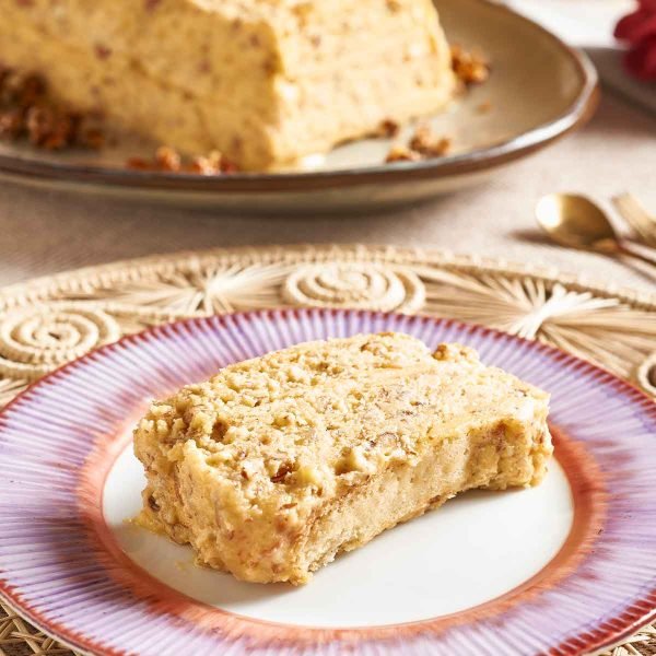 Un postre suave y delicado, con capas de crema ligera, galletas tipo lenguas de gato y un toque crujiente de almendra picada tostada. El equilibrio perfecto entre textura y dulzura en cada cucharada.