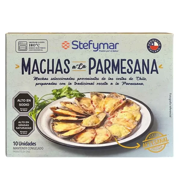 Descubre el exquisito sabor de las Machas a la Parmesana, preparadas para ofrecerte una experiencia gourmet sin complicaciones. Este plato, listo para calentar y servir, presenta machas extra grandes frescas cubiertas con una generosa capa de queso parmesano y mantecoso.