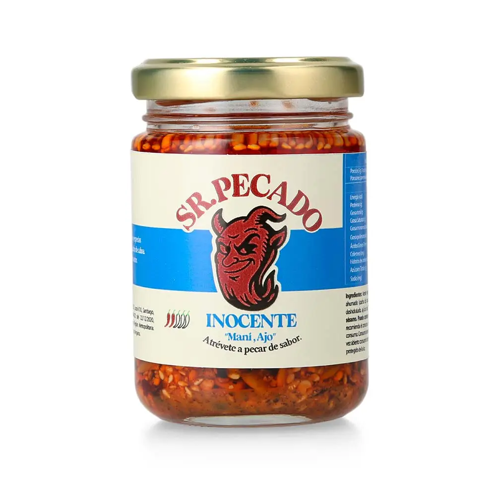 Sr. Pecado inocente es un Blend Gourmet a base de aceite vegetal, semillas, maní y especias ahumadas, con un suave picor del cacho de cabra. Es la versión más suave de «Sr. Pecado Original».